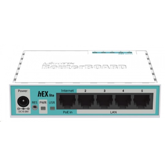 MikroTik RouterBOARD hEX lite, 850MHz CPU, 64MB RAM, 5x LAN, vč. L4 licence