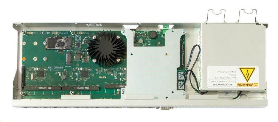 Balení obsahuje: RB1100AHx4 v hliníkovém krytu do 1U, integrovaný napájecí zdroj, napájecí kabel, vše je sestaveno a připraveno k okamžitému nasazení.