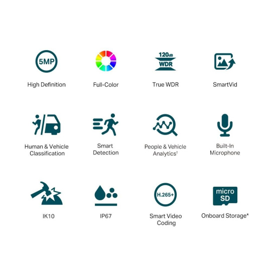 - Smart Video Enhancement: Profesionální technologie VIGI zpracovávají videa tak, aby výrazně zlepšily jejich kvalitu, která je zásadní pro vaše monitorování, včetně Smart IR, True WDR, 3D DNR a Night Vision.