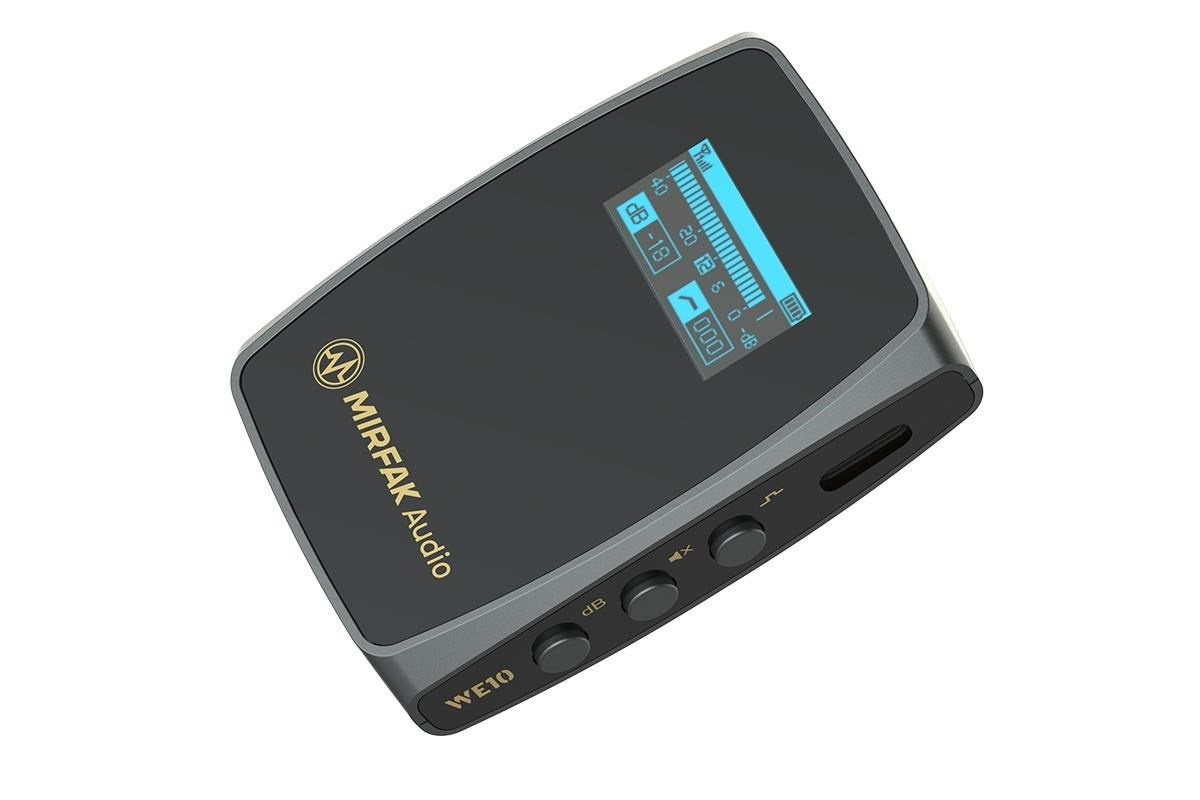 Mirfak Audio WE10 je kompaktní bezdrátový mikrofonní systém, který je ideální pro tvorbu obsahu, filmování, jevištní prezentace, vlogování, YouTube videa, živé vysílání atd. Díky jeho malým rozměrům ho sbalíte do tašky nebo kapsy a je připraven k nahrávání během chvilky. Přehledná obrazovka přijímače znázorňuje všechna zvolená nastavení, sílu signálu, úroveň baterie a vizualizuje úroveň vstupu z dálkového snímače.