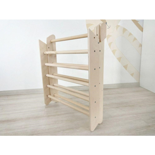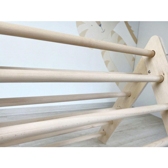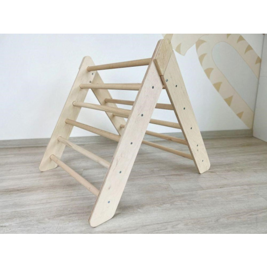 Montessori Piklerové trojúhelník nabízí dětem možnost pohybové realizace dle vlastních schopností a odvahy. Děti se naprosto přirozeně naučí rozpoznat a respektovat své možnosti a míru kuráže, zároveň jejich obratnost bude stále růst. Žebřík má bezpečnou výšku, příčky jsou akorát široké pro pohodlný úchop a navíc opatřené systémem proti protáčení příček.