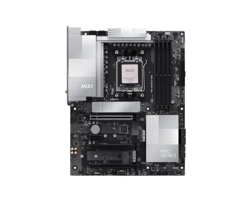 PRO X870E-P WIFI offers a simple design with a harmonious silver color scheme that perfectly matches both white and black PC builds. It is engineered with many exclusive features of MSI, a true Wi-Fi 7 with EZ Antenna, 5G LAN, PCIe 5.0 M.2 with EZ M.2 Shield Frozr II, and Supplemental PCIe Power, ready for the AMD Ryzen 9000 series processors.