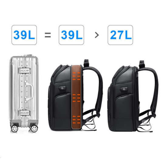 Pokud se vám podaří zaplnit štědrý objem batohu, můžete jej jednoduše navýšit otevřením zipu v jeho střední části. Dostanete se tak z 27 l až na 39 l objemu, který odpovídá menším cestovním krosnám nebo příručním kufrům.
