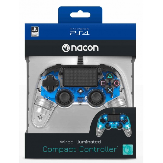 Nacon Wired Compact Controller - ovladač pro PlayStation 4 - průhledný modrý