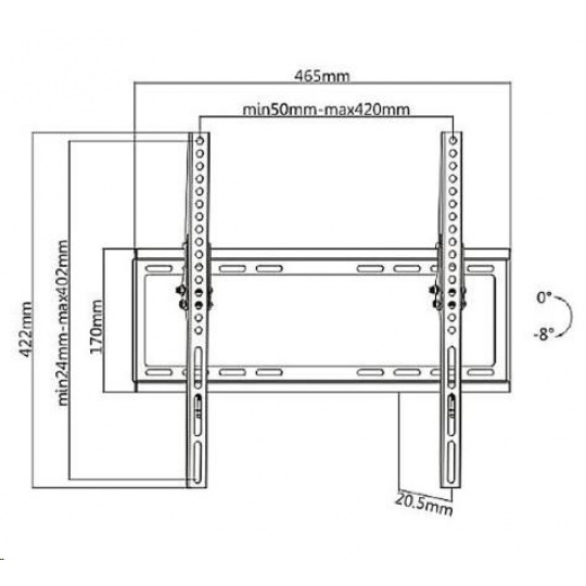 Náklopný držák Tv Fiber Mounts F7M74 Sklopný držák na televize s hmotností až 35kg a podporou VESA 75x75 až 400x400 Univerzální sklopný držák pro zavěšení všech typů televizorů - LCD, LED, plazmové, smart, 3D, prohnuté i OLED a QLED.. Po zavěšení televize na držák je možné obrazovku mírně naklopit až o 8° směrem dolů. Držák má ocelovou konstrukci, kterou je možné dát televize s hmotností až 35kg. Podporuje zavěšení všech televizorů s VESA standardem 75x75 až 400x400. Barevné provedení černé. Záruka 10 let. Držák dodáváme včetně veškerého instalačního materiálu - hmoždinky, vruty, sada šroubů a podložek. Levný držák na Tv s naklopením Fiber Mounts F7M74 Technické údaje: nosnost 35kg podporuje VESA standardy 75x75 až 400x400 ideální na Tv s úhlopříčkou 19" až 55" univerzální, zavěšení všech typů televizorů možnost naklonění obrazovky směrem dolů od 0° do -8° vzdálenost televizoru od zdi 21mm je opravdu malá, ale dostatečná pro spolehlivé odvětrávání konstrukce držáku je ocelová zajištění televizoru proti vysazení - 2x šroub rozměr držáku pro uchycení na stěnu 465x170mm barevné provedení černé záruka 10 let Držák Tv podporuje VESA standardy pro zavěšení: VESA 75x75 VESA 100x100 VESA 200x100 a 100x200 VESA 200x200 VESA 300x200 a 200x300 VESA 300x300 VESA 400x200 a 200x400 VESA 400x300 a 300x400 VESA 400x400.