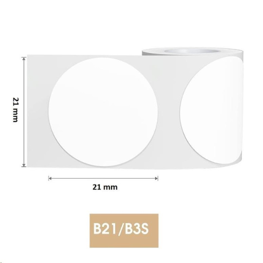 Balení obsahuje 1x roli bílých samolepících štítků Niimbot o rozměru 21x21mm – 300ks.