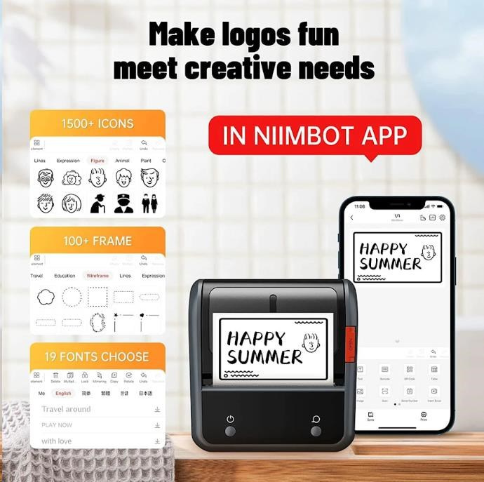 Při navrhování štítku můžete použít různá písma, tvary, ikony, velikosti a formáty, abyste si vytiskli etikety nebo štítky podle své představy. Můžete importovat fotografie z vašeho telefonu nebo obrázky z internetu, aby byl design jedinečnější. Bezplatná aplikace pro iOS nebo Android nabízí více než 1500 ikonek, více než 100 rámečků, 19 fontů písma a umožňuje také tisk QR kódů. Můžete si vybrat z různých stylů písma, velikostí a formátů, abyste si vytiskli etikety nebo štítky přesně podle své představy. Tiskárna automaticky rozezná vložené etikety a aplikace přizpůsobí rozměry pro tisk.