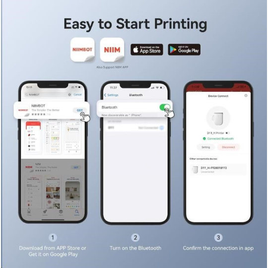 Zapomeňte na zdlouhavé a komplikované procesy tisku etiket. S novinkou NIIMBOT D11-H je tisk etiket hračkou. Díky Bluetooth připojení a lithiovému akumulátoru můžete polepovat bez omezení až 5 hodin. S NIIMBOT D11-H můžete jednoduše označovat věci v kanceláři, škole, obchodě a na mnoho dalších místech. Její kompatibilita se systémy Android a iOS znamená, že můžete tisknout přímo ze svého smartphonu nebo tabletu, což zajišťuje maximální pohodlí a efektivitu.