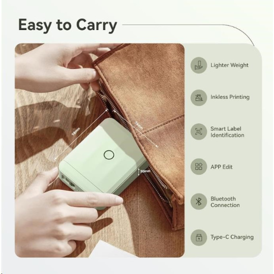Zapomeňte na zdlouhavé a komplikované procesy tisku etiket. S inovovanou tiskárnou štítků NIIMBOT D110-M je tisk etiket hračkou. Díky Bluetooth připojení a lithiovému akumulátoru můžete polepovat bez omezení až 4 hodiny. S NIIMBOT D110-M můžete jednoduše označovat věci v kanceláři, škole, obchodě a na mnoho dalších místech. Její kompatibilita se systémy Android a iOS znamená, že můžete tisknout přímo ze svého smartphonu nebo tabletu, což zajišťuje maximální pohodlí a efektivitu.