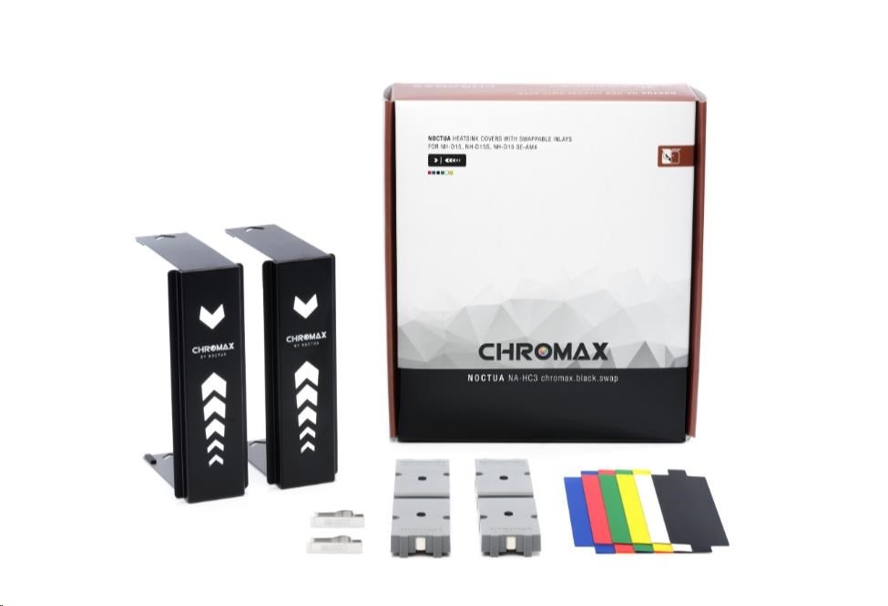 Kryty chladiče NA-HC3 chromax.black.swap jsou doplňkovým příslušenstvím pro oceňované chladiče CPU NH-D15, NH-D15S a NH-D15 SE-AM4 od společnosti Noctua. Vyrobeny z vysoce kvalitního hliníku s černým práškovým nástřikem a včetně vyměnitelných vložek v černé, bílé, červené, modré, zelené a žluté barvě umožňují uživatelům barevně přizpůsobit chladič tak, aby ladil s oblíbenými barevnými schématy sestav, jako je celočerná, černobílá nebo černočervená. Díky snadné a přímočaré instalaci změna vzhledu vašeho chladiče NH-D15(S) trvá jen několik minut a nevyžaduje ani jeho odpojení od CPU. V kombinaci s ventilátory chromax.black.swap edice NF-A15 vám dva kryty NA-HC3 chromax.black.swap nabízejí nekonečné možnosti designu vlastního, individuálního NH-D15(S), který vypadá stejně skvěle, jako chladí!