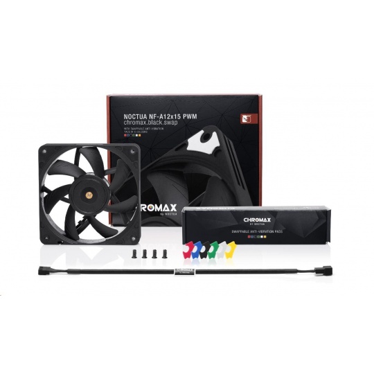 Řada NF-A12x15 se zasloužila o přední volbu při výběru 120mm větráčků množstvím ocenění a doporučení od technických časopisů a stránek po celém světě. NF-12x15 PWM chromax.black.swap kombinuje tichý chod této řady a elegantní celočerný design řady chromax.black. Balení obsahuje také sadu protivibračních podložek pro ty, kteří si rádi svůj stroj barevně sladí. Kvalitu chodu a spokojenost také zaručí SSO2 ložisko, více než 150000 hodin MTTF a 6 let záruky u výrobce.
