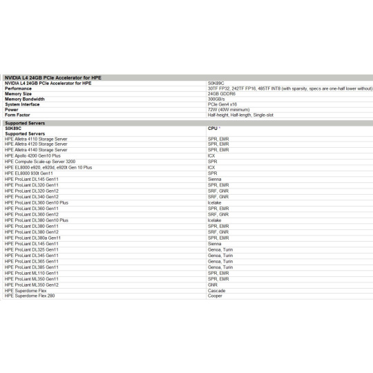 NVIDIA L4 24GB PCIe Accelerator for HPE