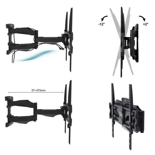 Kvalitní velmi pěkný držák na televize 26-60", snadné polohování, otočný +/-75°, sklopný +2°/-12°, výsuvný 57-470mm, korekce roviny +/-3°, krytky kabeláže, VESA 100x100 až 400x400, nosnost 45kg.... více
