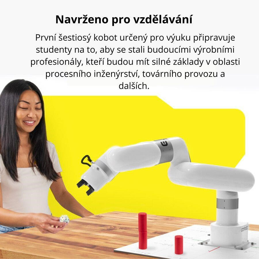Kolaborativní roboti (koboti), stejně jako tradiční roboti v praxi vykonávají automatizované, opakující se úkoly zadané technikem nebo inženýrem. Pomáhají vykonávat úlohy s opakovanými pohyby nebo zvedat těžké předměty. A protože jsou vybaveny řadou bezpečnostních prvků, jsou často implementovány při společné práci s lidmi – třeba při lehčí montáži, balení a kontrole kvality. Ozobot ORA je příkladem právě takového profesionální kobota. Šestiosé robotické rameno však své uplatnění najde v rámci moderní STEAM výuky studentů na středních škol a univerzitách. Promění učebnu nebo laboratoř v miniaturní továrnu a podnítí zájem o technické vzdělávání příští generace procesních inženýrů, automatizačních techniků, továrních specialistů a operátorů robotů a kobotů! Studenti si osvojí znalost souřadnicových rovin a pojmů robotiky až po pokročilé programování s podmíněným kódováním a žebříkovou logikou. Získají silné základy v oblasti procesního inženýrství, továrních operací a mnohých dalších.