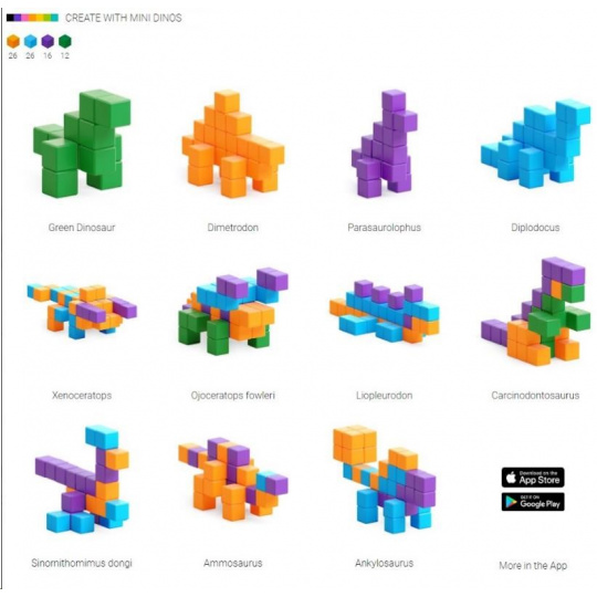 Řada PIXIO Mini Dinos obsahuje 80 bloků PIXIO ve 4 barvách. Umožní oživit vaše kreativní nápady a