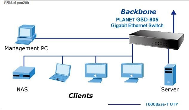 Gigabitové přepínače v miniaturním provedení pro stolní použití. Mají plnou propustnost, jsou neblokující, vybaveny architekturou Store and Forward. Vlastnosti: 8 portů 1000Base-T, Switching, Full Duplex (1000/2000 Mbps), Auto-Negotiation (10/100/1000 Mbps) Auto-MDI/MDI-X, automatická detekce přímý skřížený kabel i pro 10/100Mbps 4k MAC adres, 16Gbps propustnost sběrnice, 1Mbit frame buffer pole LED indikátorů pro diagnostiku provozu provedení pro instalaci na stůl rozměry 191 x 85 x 26 mm , hmotnost 390g interní napájecí zdroj: 230V/50Hz AC.