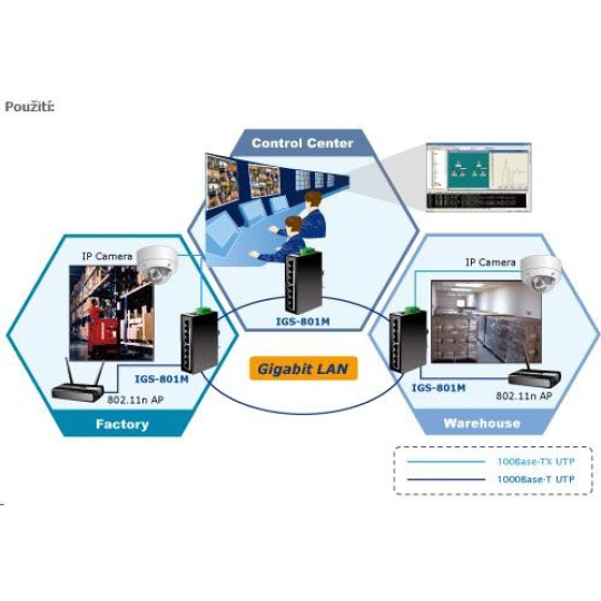 Vlastnosti: - 8 portů 1000Base-T, Switching, Full Duplex (1000/2000 Mbps), Auto-Negotiation (10/100/1000 Mbps), automatická detekce přímý/křížený kabel na každém portu - propustnost sběrnice 16Gbps, podpora Jumbo Frame do 9kB, 8k MAC adres - pole LED indikátorů pro diagnostiku provozu - instalace na DIN lištu, montážní díl součástí - instalace na zeď, montážní díl součástí - krytí IP30 - napájení: 12-48V DC redundantní, připojení možné ze dvou různých zdrojů (nejsou součástí balení) - ochrana proti přepólování, připojení napájení na svorkovnici, umístění na spodním panelu (nepřekáží při montáži na zeď) - přepěťová ochrana napájení do 6kV proti napěťovým špičkám (EFT) - přepěťová ochrana LAN portů proti elektrostatickému náboji do 6kV (ESD) - zařízení je odolné proti pádu (IEC-60068-2-32) z výšky 75cm na všechny dopadové části - zařízení je odolné proti vibracím (IEC-60068-2-6) 10-500-10Hz, 4x g, 0,5oct/min - zařízení je odolné proti přetížení krátkodobému zrychlení 50g, dlouhodobému 4g, (IEC-60068-2-27) - EMI/EMS, elektromagnetická kompatibilita a slučitelnost dle CE EN-6100-4-2,3,4,5,6 - elektrická bezpečnost dle CE EN-60950 - pracovní teplota -40 až 75 st. C, vlhkost do 95% - příkon 13,2W - rozměry 135 x 87 x 32 mm.