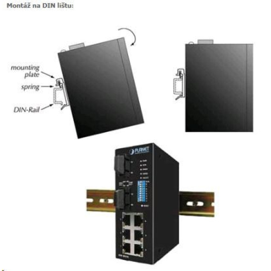 Planet switch ISW-801T, 8x 10/100, DIN,IP30, rozšířený teplotní rozsah -40~75 st.C