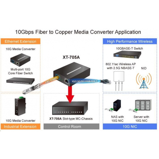 Planet XT-705A, konvertor 10G/5G/2.5G/1G/100M / miniGBIC SFP+ 10GBASE-X