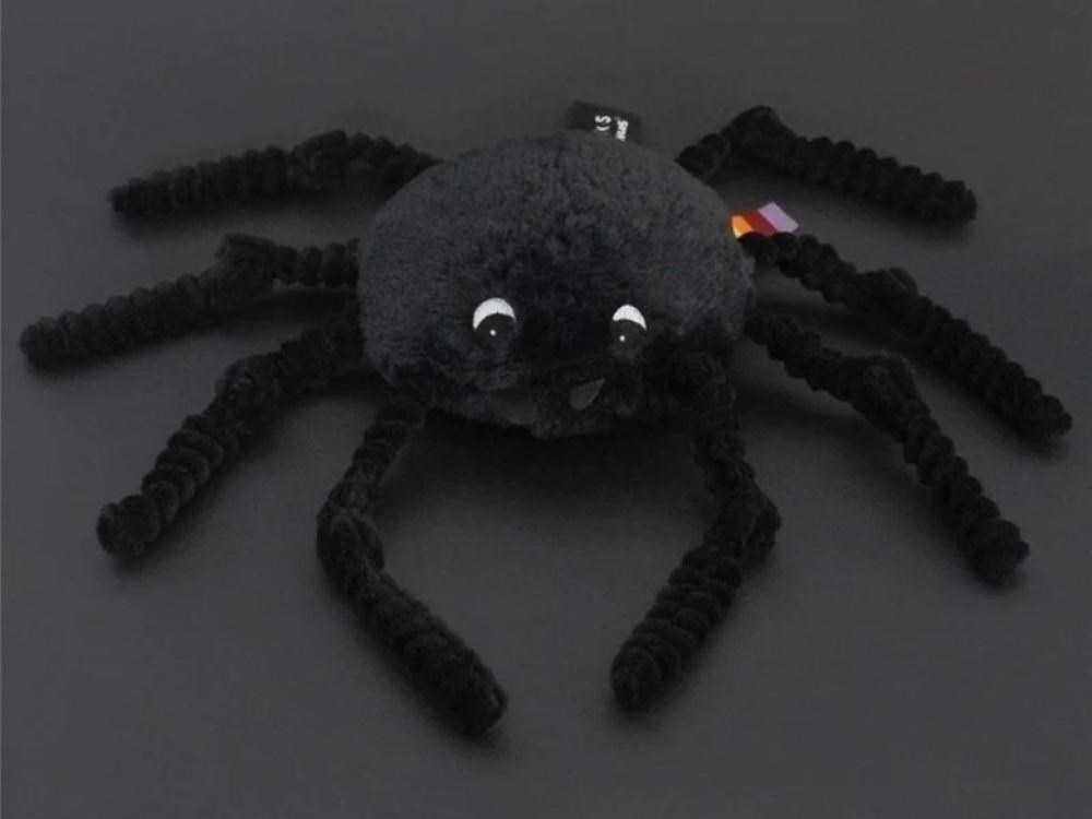 Plyšový pavouk, z úžasně jemného a hebkého materiálu, udělá radost holčičkám i chlapcům. S velkým plyšovým pavoukem si užijí děti spoustu zábavy, mohou jej využít ke spoustě her, jako zvířecího kamaráda do postýlky nebo parťáka na cesty. Plyšák v podobě černého pavouka, s nožkami z manšestru, je veselou a originální hračkou pro děti již od narození..