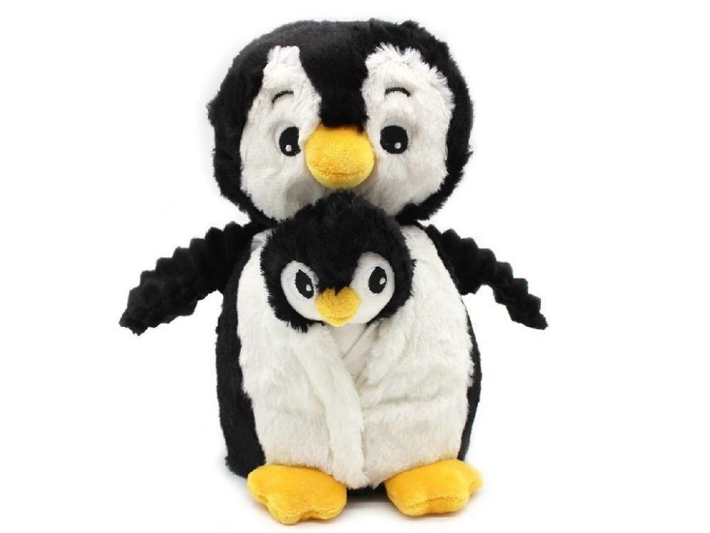 Plyšový tučňák - máma s miminkem, černá