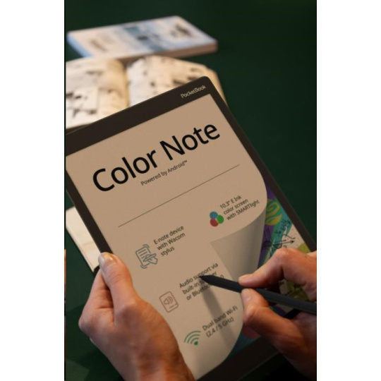 - Velký barevný displej 10,3” E Ink Kaleido™ 3, bezpečný pro oči