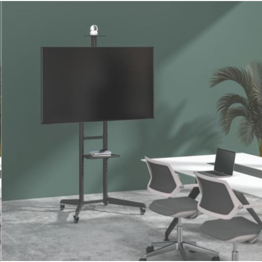 Všestranný pojízdný stojan Brateck T1040T je určen pro instalaci TV s plochou obrazovkou s úhlopříčkami od 37“ do 70“ a hmotností až 50 kg. Stojan poskytuje stabilní podporu a díky integrovaným kolečkům s možností aretace zároveň umožňuje snadné a bezpečné přemístění dle potřeby. Montážní deska pro upevnění TV je nastavitelná ve čtyřech různých výškových úrovních, jednoduchá změna náklonu TV v rozsahu +5°~-12° pak umožňuje nastavení optimálního pozorovacího úhlu. Stojan je navíc vybaven jednou výškově stavitelnou poličkou na kameru s nosností 5 kg a jednou výškově nastavitelnou poličkou na příslušenství s nosností 5 kg. Díky tomuto příslušenství je stojan vhodný pro pořádání telekonferencí, ale také pro využití při kancelářských a školních prezentacích, nebo při domácí zábavě.