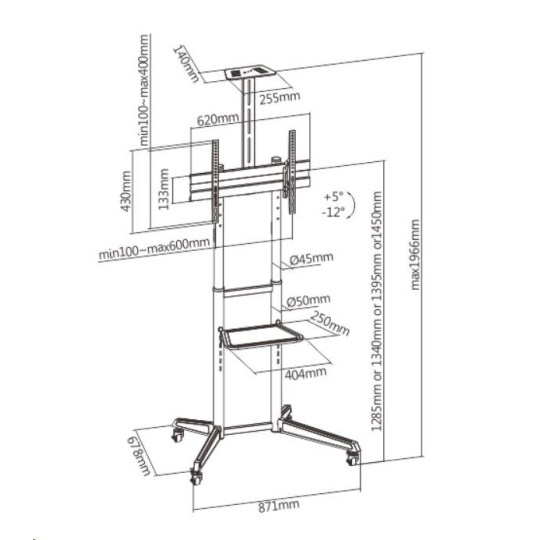 • Rozsah výškového nastavení1285, 1340, 1395 nebo 1450mm