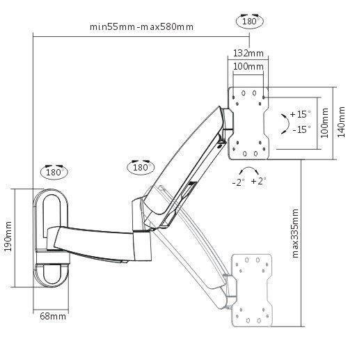 Polohovatelný držák Tv monitoru Fiber Mounts FINE1 Nástěnný držák na televize a monitory 13-43", otočný +/- 90°, sklopný +/- 15°, vzdálenost od zdi 55 až 580mm, výškové nastavení 335mm, korekce roviny +/-2°, plynový píst, vedení kabelů, VESA 75x75 a 100x100, nosnost 15kg Špičkový plně polohovací držák na monitory a menší televize s úhlopříčkou 13-43". Otáčení do stran i kolmo ke zdi, změna výšky obrazovky až 335mm pouhým zatlačením nebo vytlačením obrazovky rukou, naklápění nahoru a dolů až o 15°, korekce roviny po usnadnění instalace +/- 2°, systém pro vedení kabeláže. Velmi pěkný dizajn ve stříbrné barvě. Držák má plynovou pružinu, která se nastaví na hmotnost zavěšené obrazovky, díky tomu je nastavování výšky extrémně pohodlné, rychlé a přesné. Balení obsahuje instalační materiál. Záruka 5 let. Polohovatelný nástěnný držák na monitory a televize Fiber Mounts FINE1 si zamilujete Technické údaje: nosnost 15kg nastavení plynové pružiny na hmotnost 2,5 - 15 kg na televize a monitory s úhlopříčkou 13" až 43" podporuje VESA standardy 75x75 a 100x100 výšková polohovatelnost 335 mm nastavitelná vzdálenost od zdi 55 až 580 mm otáčení na obě strany +/- 90° naklápění nahoru i dole o +/- 15° korekce roviny +/- 2° plynová pružina díky které obrazovka zůstává v požadované výšce extrémně snadné polohování obrazovky, bez nářadí, jednou rukou systém pro vedení kabeláže vynikající kvalita na profesionální úrovni barevné provedení stříbrné záruka 5 let Otočný, sklopný a výškově polohovatelný špičkový držák na monitory a menší televize 13-43" Fiber Mounts FINE1 Držák na Tv a monitory Fiber Mounts FINE1 podporuje VESA standardy: VESA 75x75 VESA 100x100 možnost zakoupení nástavce VESA 100x200 a 200x100 možnost zakoupení nástavce VESA 200x200 Držák monitoru Tv Fiber Mounts FINE1 je vhodný pro zavěšení televizorů a monitorů, jejichž hmotnost je v rozmezí 2,5 kg až 15 kg a které mají VESA standard 75x75, 100x100, 100x200, 200x100 nebo 200x200. V případě VESA větší jak 100x100 je nutné zakoupit VESA nástavec. Na velikosti televize nebo monitoru nezáleží. Výškově polohovací, otočný a sklopný, výsuvný držák na televize a monitory Fiber Mounts FINE1 si zamilujete Extrémně snadné polohování obrazovky do všech stran, vynikající kvalita a krásné dizajnové provedení - to jsou hlavní přednosti držáku na monitory a televize Fiber Mounts FINE1..