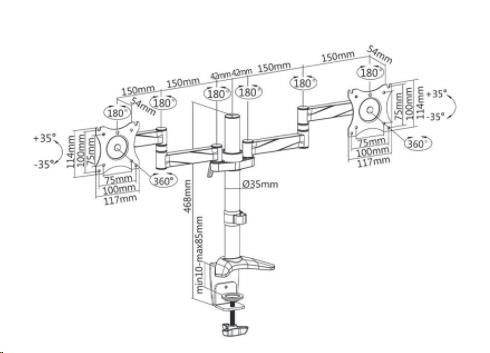 Kancelářský stolní držák na 2 monitory Fiber Mounts M71C4 Stolní držák na 2 monitory 13-27", otočný, sklopný, výškově polohovatelný, funkce pivot Stolní držák pro zavěšení 2 monitorů o úhlopříčce 13 až 27". Plně nastavitelný - otáčení do stran, náklon, výškově polohovatelný, funkce pivot, korekce roviny obrazovky. Nosnost 16kg, VESA standard 75x75 a 100x100. Stolní držák na 2 monitory v krásném designu. Fiber Mounts M71C4 je kvalitní a velmi pěkný stolní držák na 2 monitory, plně nastavitelnýStolní držák na 2 monitory do kanceláře pracovny nebo domácnosti Fiber Mount M71C4 Technické údaje: nosnost 16kg (2x8kg) podporuje VESA standard 75x75 a 100x100 doporučujeme na monitory o velikosti 13 až 27" obě ramena jsou plně otočná do stran obě ramena umožňují nastavení vzdálenosti od nosníku funkce PIVOT - horizontální nebo vertikální otočení obrazovek korekce roviny obrazovek 2 typy uchycení na stolovou desku uchycení na stolovou desku o síle 10 až 85mm celková výška 400mm úchytky na kabeláž barva stříbrná, nosník chromový záruka 2 roky.