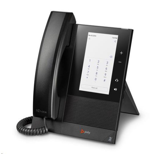 | Audio | Poly HD Voice; Technologie Poly Acoustic Clarity zajišťuje plně duplexní hovory a potlačuje akustickou ozvěnu i okolní šum; Technologie Poly Acoustic Fence potlačuje okolní hluk při použití sluchátka nebo kabelového sluchátka; Technologie Poly NoiseBlockAI odstraňuje většinu okolního hluku při používání konferenčního reproduktoru; Širokopásmový zvuk TIA-920, v souladu s typem 1 (plně duplexní IEEE 1329); Individuální nastavení hlasitosti s vizuální zpětnou vazbou pro každou zvukovou cestu; Detekce hlasové aktivity; Komfortní tvorba hluku; Generování tónů DTMF (RFC 2833 a v pásmu); Přenos zvukových paketů s nízkým zpožděním; Adaptivní paměti pro vyrovnání zpoždění |
