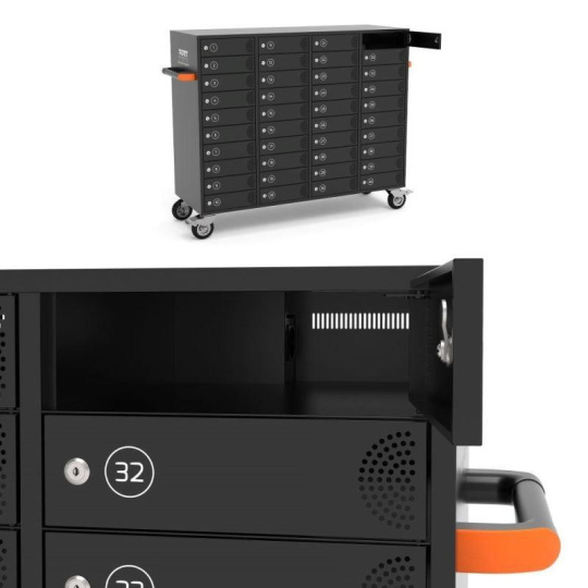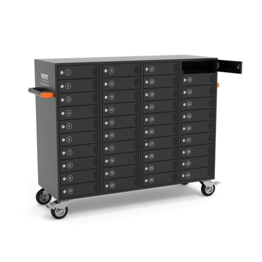 Tento cabinet dokáže nabíjet, bezpečně ukládat a spravovat až 40 tabletů, notebooků, mobilních telefonů a dalších elektronických zařízení.