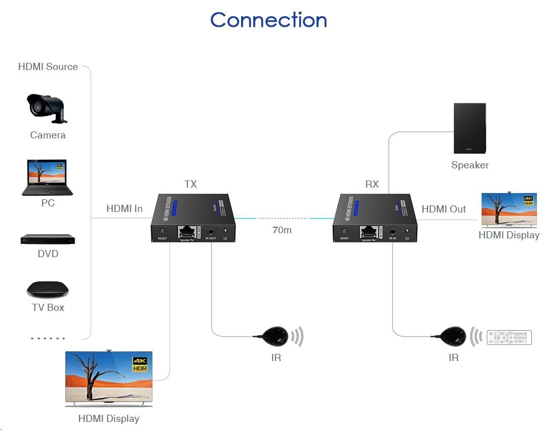 - 4K HDMI extender až do 70 metrů