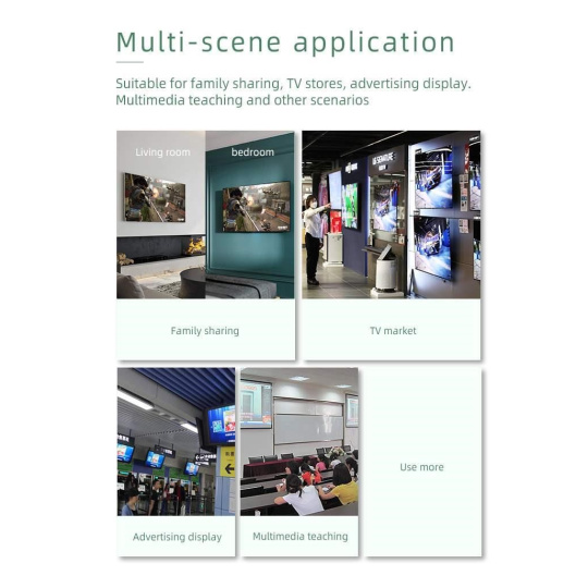 - Přepínač a správa EDID umožňuje připojit na výstupu různé monitory, které podporují rozlišení 8K nebo 4K nebo FULL HD 1080p