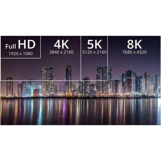 - Rozlišení: 8K@60hz, 4K@120Hz, 1080p