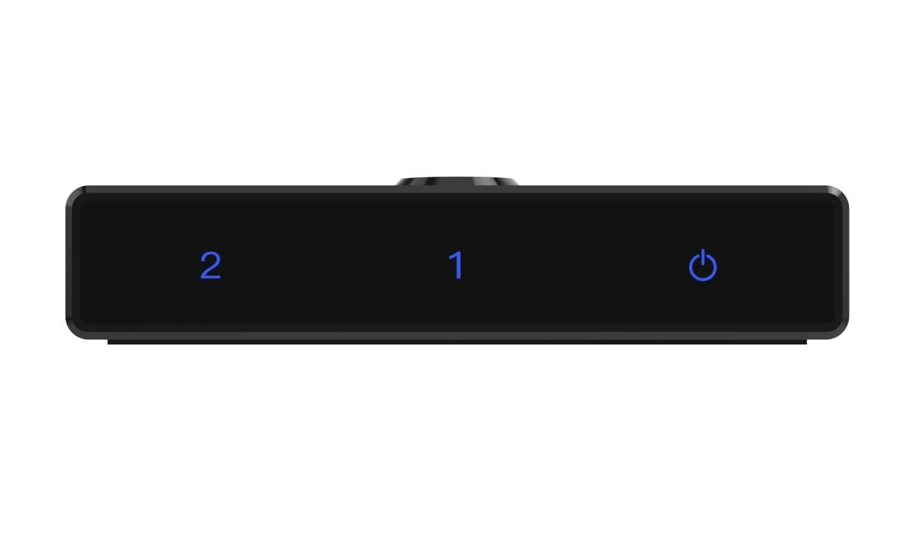 2 HDMI zařízení sdílejí 1 HDMI obrazovku nebo přepínač z jednoho zdroje HDMI signálu přepíná na dva monitory (vždy se zobrazuje obraz pouze na jednom z monitorů). Výběr zařízení je tlačítkem na přepínači.