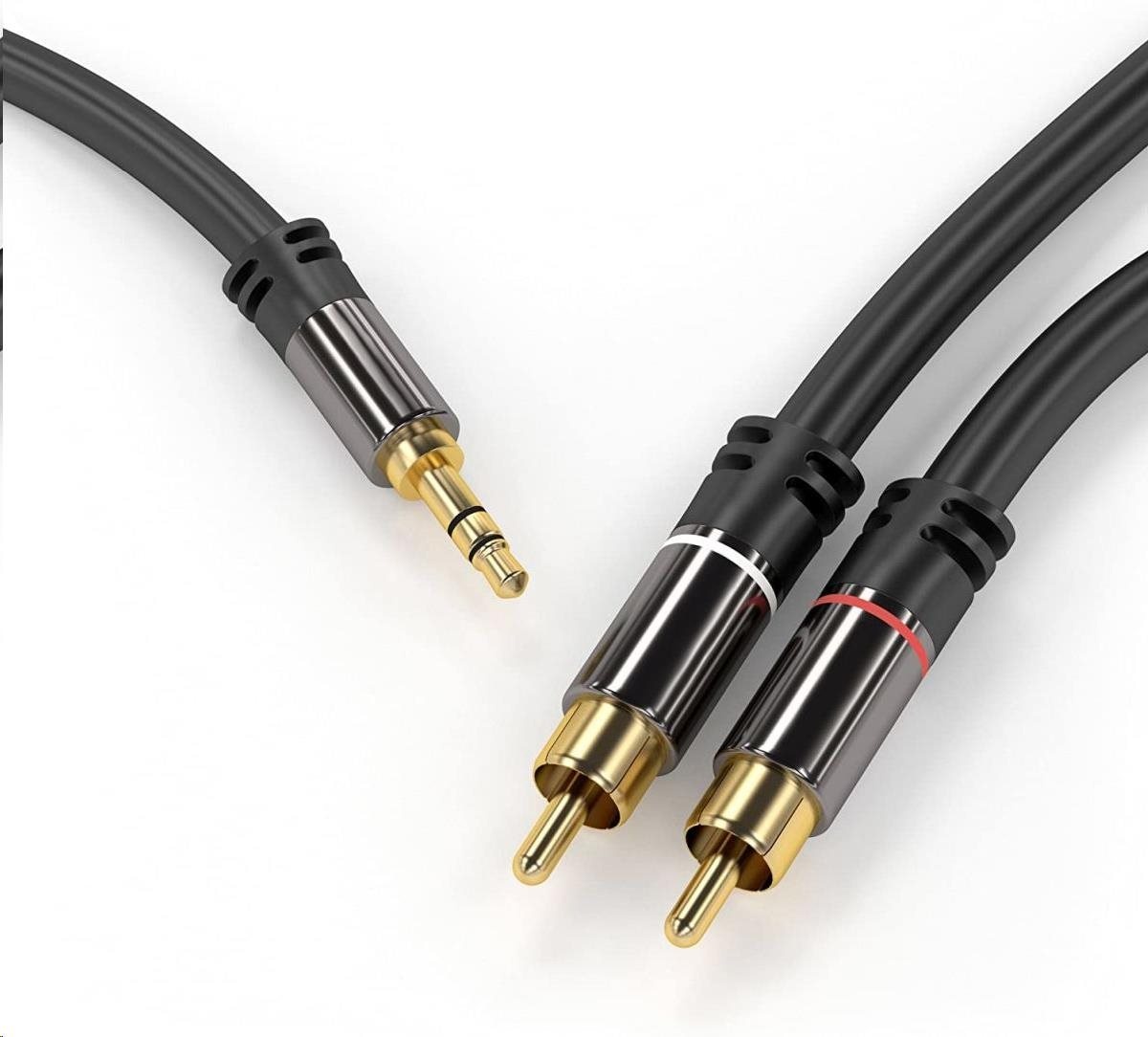 Konektory 3.5" stereojack samec - 2x cinch RCA samec (audio levý/pravý kanál)