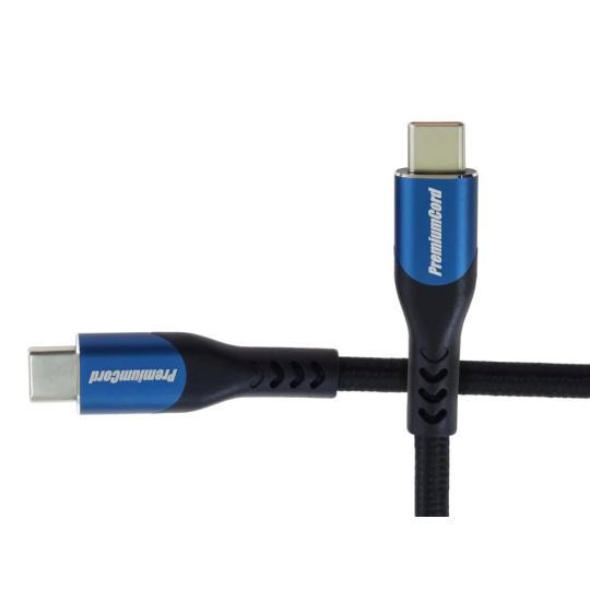 PremiumCord USB-C kabel ( USB 3.2 GEN 2x2, 5A, 100W, 20Gbit/s ) 3m, bavlněný oplet
