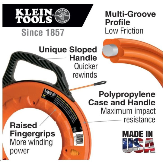 KLEIN TOOLS - protahovací pero zakončené ocelovou spirálou, sklolaminátové jádro, délka 30m, průměr 4.8mm