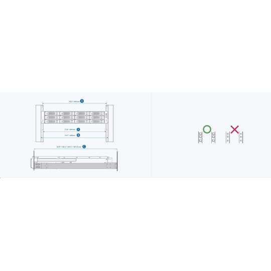Sady kolejnic QNAP Rail Kits pomáhají při instalaci QNAP NAS do racku. Posuvné kolejnice umožňují zasunutí QNAP NAS dovnitř a vysunutí ven pro snadnou údržbu a správu. Modely QNAP NAS určené do racku vyhovují standardům rackové montáže ANSI/EIA-RS-310-D. Než nakoupíte serverový rack, nejprve se prosím ujistěte, zda tento serverové rack odpovídá příslušným specifikacím.