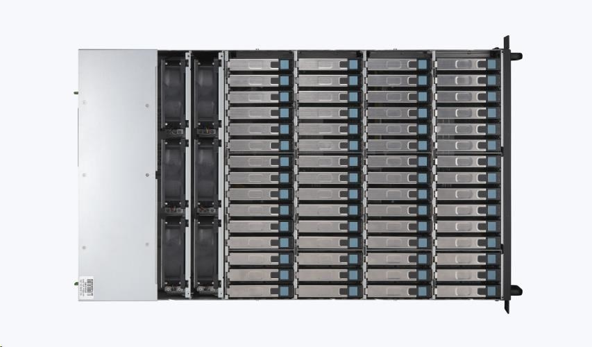 | Indikátory LED | Přední panel: HDD 1-60, tlačítko napájení, LED indikátor stavu napájení, LED indikátor poruchy napájení, LED indikátor teploty (přehřátí), LED indikátor poruchy ventilátoru Zadní panel: SAS konektor, LED indikátory stavu SAS UP/DOWN Link, ID LED |