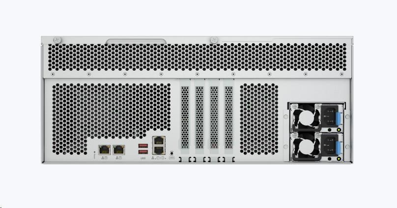 • Vysokorychlostní porty 10/2,5GbE: Je vybaven dvěma porty 10GbE a dvěma porty 2,5GbE, které jsou ideální pro rychlé sdílení souborů více uživateli, virtualizaci s nízkou latencí a vysoce výkonné mediální pracovní postupy.