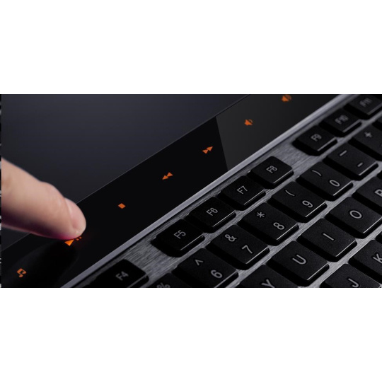 Rapoo E9270P Bezdrátová klávesnice s dotykovou multimediální plochou Vítěz IF Design Award Inteligentní multimediální dotyková tlačítka Multimediální klávesy s hmatovou zpětnou vibrací 4,0 mm ultra-tenký design Elegantní konstrukce se základnou z nerezové oceli Spolehlivé bezdrátové připojení 5GHz Spolehlivé bezdrátové připojení 5GHz Spolehlivý bezdrátový přenos 5GHz daleko od rušení bezdrátového přenosu 2,4GHz, rozhraní Bluetooth a zařízení WIFI. Inteligentní mediální tlačítka Podsvícení se rozsvítí, když se vaše prsty přiblíží k dotykové ploše; když se vaše prsty vzdálí, podsvícení zhasne; tímto způsobem máte vše pod kontrolou i ve tmě. Čokoládová tlačítka s velmi štíhlým profilem Nejtenčí 4mm struktura nůžkového typu a deska z nerezové oceli přináší pohodlnou zpětnou vazbu. Přijímač NANO připojit-a-zapomenout Tak malý a nenápadný, můžete jej připojit k portu USB zapomenout na něj a zároveň můžete zapomenout na ztrátu připojení. Automatické vypnutí Pokud klávesnice nezaznamená podobu několika minut žádný vstup, přepne se do režimu standby. Díky této funkci bude klávesnice vždy připravena a bude šetřit své baterie. Napájení 2x AA alkaline Systémové požadavky Windows® XP/Vista/7 Windows® 8, USB port Rapoo E9270p 5G Wireless 2 Block Metal Keyboard Black.