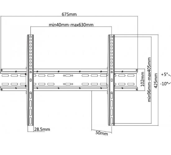 Nástěnný ocelový držák SLIM s minimální vzdáleností od stěny na Plasma a LCD TV s uhlopříčkou 37"- 70" (94-178cm) a hmotností maximálně 35kg. Středová konzole na zavěšení TV s upevněnými držáky, vertikálně výklopný +5°/-10°, vzdálenost od stěny 50mm, materiál ocel, barva černá. Uchycení VESA: 200x200, 300x200, 300x300, 400x200, 400x300, 400x400, 600x400..