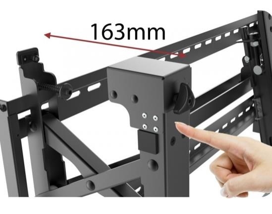 Nástěnný ocelový držák s výsuvným Pop-Out mechanizmem pro vytváření stěn z více Plasma nebo LCD TV s uhlopříčkou 45"- 70" (114-178cm) a hmotností maximálně 70kg. Uchycení VESA: 200x200, 300x300, 400x200, 400x400, 600x400. Popis: není vertikálně výklopný ani horizontálně otočný, proměnlivá vzdálenost od stěny 137-300mm, ochrana proti odcizení, materiál ocel, barva černá..