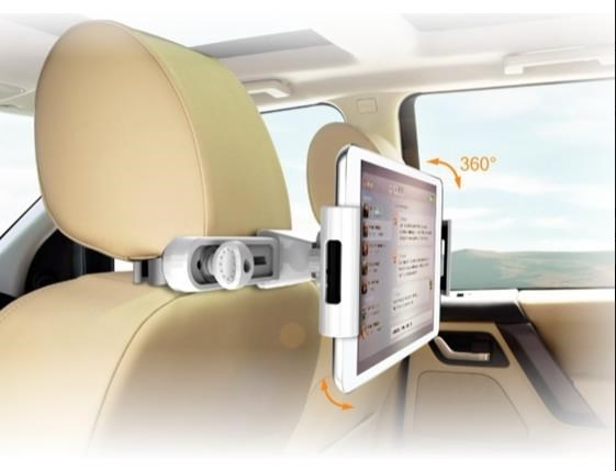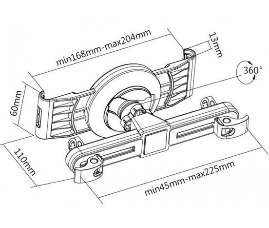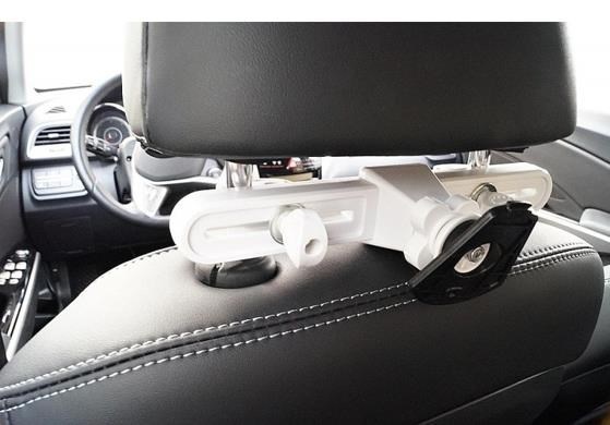 Držák pro tablety 7-11" v horizontální i vertikální poloze do auta pod opěrku hlavy. Určeno pro pasažery na zadním sedadle. Fixace ze dvou stran, otáčení tabletu o 360°, nastavitelná šíře uchycení 45-225mm, plastové provedení, bílý..