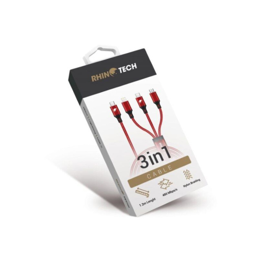 RhinoTech nabíjecí a datový kabel 3v1 USB-C (MicroUSB + Lightning + USB-C) 40W 1,2m červená