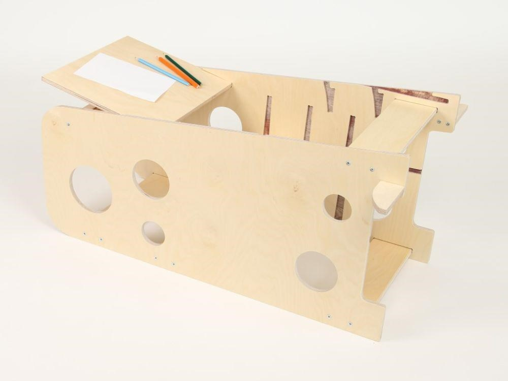 Rostoucí učící věž 3v1 Bublina Max 90 cm se stabilizačními prvky, přírodní (natur)