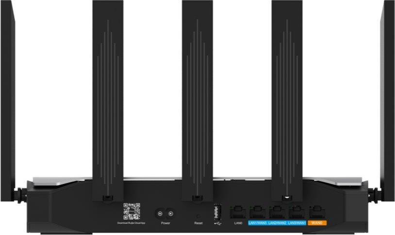 Registrace dealerské ceny: https://docs.google.com/forms/d/1sWwsswsbBk36eZx4CJrfl47qUvrORQyYz7kMjrt2f_c/prefill Popis produktu Dvoupásmový Gigabitový All-in-one bezdrátový router podporující 2,4 GHz tak i 5 GHz pásmo, 802.11ax standard s přenosovou rychlostí 574 + 2402 Mbps, má 6 fixních antén se ziskem 5 dBi, podporuje režim AP Router a až 4 WANy s load balancingem. Router kabelově poskytuje 10/100/1000 Mbps WAN, 1x 10/100/1000 Mbps LAN a k tomu dle potřeby 3 přepínatelné 10/100/1000 Mbps LAN/WAN porty. Klíčové vlastnosti • Dual Band, Wi-Fi 6 (802.11ax) • 2x2 MU-MIMO, 574 + 2402 Mbps • (1) 10/100/1000 Mbps WAN + (1) 10/100/1000 Mbps LAN + (3) 10/100/1000 Mbps LAN/WAN • Podpora Reyee Mesh, OFDMA, rodičovská kontrola, VLAN, IPTV • Lokální nebo vzdálená správa přes Ruijie Cloud • IPv6 routování • Operační módy AP Router, Repeater a WISP • Podporované VPN: L2TP, PPTP, IPsec, OpenVPN • Vestavěný napájecí adaptér Obsah balení • Zařízení • Napájecí kabel • Patch kabel Technické parametry Bezdrátové vlastnosti Bezdrátové frekvence:2.4 + 5 GHz (dual band) WiFi standardy:802.11n, 802.11a, 802.11ac, 802.11b/g, 802.11ac - wave2, 802.11ax MU-MIMO:Ano Přenosová rychlost - 5GHz [Mb/s]:2402 Přenosová rychlost - 2.4GHz [Mb/s]:574 Vysílací výkon 2.4GHz [dBm]:20 Vysílací výkon 5GHz [dBm]:33 2.4GHz MIMO:2 x 2 5GHz MIMO:2 x 2 Typ antény:Fixní Počet fixních antén:5 Roaming:Ano Zisk antény [dBi]:5 Obraz Technologie a vymoženosti:Reyee Mesh, Cloud Management Konektory a rozhraní Rychlosti WAN:(1) 10/100/1000Mbps Rychlost LAN:(1) 10/100/1000Mbps + (3) 10/100/1000Mbps LAN/WAN Gigabit LAN:Ano Napájení Max. spotřeba energie [W]:20 Napájení přes konektor/svorkovnici:230V AC Fyzické charakteristiky Použití:Vnitřní Provozní teplota [°C]:-40 až 70 Hmotnost [g]:2000 Šířka [mm]:283 Výška [mm]:46 Hloubka [mm]:172 Software Operační mód:Repeater, AP Router Podpora IPv6:Ano Výchozí IP adresa:192.168.110.1 Výchozí jméno a heslo:Nastavuje se při prvním spuštění.