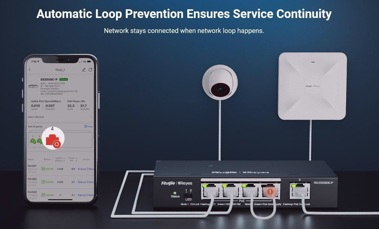 Registrace dealerské ceny: https://docs.google.com/forms/d/1sWwsswsbBk36eZx4CJrfl47qUvrORQyYz7kMjrt2f_c/prefill Popis produktu Inteligentní cloudově i přes webové rozhraní spravovatelný smart desktop switch RG-ES208GC od značky Ruijie, nabízí cenově efektivní řešení s 8 Gigabit LAN porty. Tento kompaktní přepínač je ideální pro síťové aplikace, které vyžadují výkon a spolehlivost. Co se výčtu funkcí týče, switch nabízí tichý chod bez ventilátorů, podporu až 16 VLAN, DHCP snooping, testování kabelu a ochranou proti zakruhování. Klíčové vlastnosti • 8× 10/100/1000 Mbps LAN porty • Kvalitní provedení, kovové šasi • Bez venilátoru • Nízká spotřeba - max. 4 W • Správa přes webové rozhraní a cloud • Celoživotní správa na Ruijie Cloud kdykoli a kdekoli • Rozpoznávání IP kamer - jedinečná hodnota pro CCTV síť • Automatická prevence proti zakruhování Obsah balení • Zařízení • Napájecí adaptér 5 V/1 A Technické parametry Konektory a rozhraní Rychlost LAN:(8) 10/100/1000Mbps Napájení Typ napájení:DC konektor Max. spotřeba energie [W]:4 Napájení přes konektor/svorkovnici:5V / 1A Fyzické charakteristiky Provedení:Desktop Ventilátory:Bez ventilátoru Šasi:Kovové Tlačítka:Reset Provozní teplota [°C]:0 až 40 Šířka [mm]:160 Výška [mm]:24 Hloubka [mm]:75 Obecné Rychlost přepínání [Gbps]:16 Tabulka MAC adres:4000 Rychlost předávání paketů [Mpps]:11,9 Software Web management:Ano Management:Webové rozhraní, Ruijie cloud Funkce:VLAN, DHCP snooping Výchozí IP adresa:10.44.77.200 Výchozí jméno a heslo:Nastavuje se při prvním spuštění.